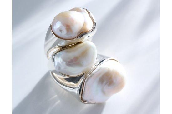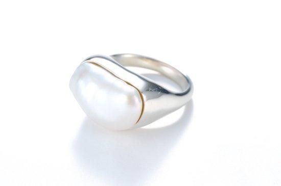 美しいバロックパールをその形状に合わせて留めたリング。