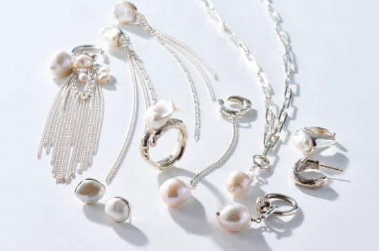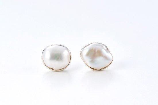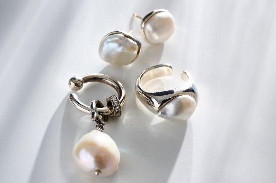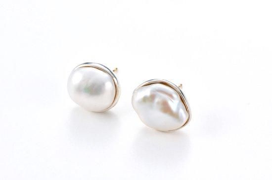 美しいバロックパールをその形状に合わせて留めたピアス。